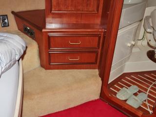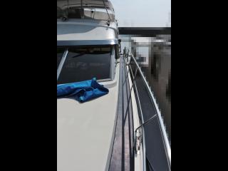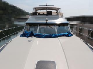 ◆写真には写っていませんが船尾用のクレーンが付属しており、オーナーさんが別注で誂えたトランサムデッキにPWCや小型のボートを積載する事が可能です。