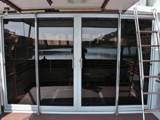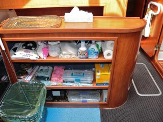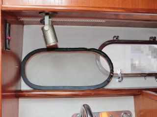 ◆この船は2台のマリンエアコンと一台のルームエアコンがサロンに装備されています。取材時はサロンのルームエアコンだけを作動させた状態で撮影作業をさせていただきましたが、全室のドアを開けておけばどの部屋でも大汗をかく事なく作業が可能でした。