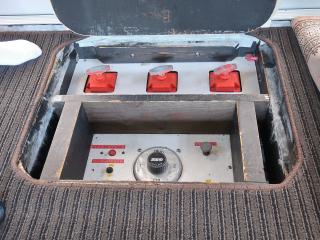 ◆アフトデッキには両舷にアンカーウィンチが装備され、また、スタンスラスター(電動)とエンジンの微速調節レバーも備わっていますので船尾で釣りをしながら流し方を変えたり、船尾の向きを変えたりすることが可能です。なお、写真には写っていませんがフルノの魚探も付属しており、ブルワークに取り付けられるようになっています。