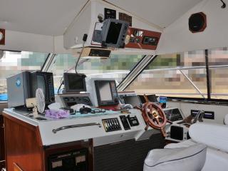 ◆この艇はフライングブリッジでもエンジンの始動や停止が可能です。またオートパイロットやプロッターも装備されています。詳しくは動画に収めていますので是非ご覧下さい。