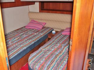 ◆ベットはオーナーズルームに2名、右舷のゲストルームに2名、キッチン横の2段ベッドに2名分が備わっています。なお、オーナーズルーム用のトイレ&シャワー室とゲスト用のトイレ&シャワー室がそれぞれ備わっています。