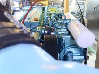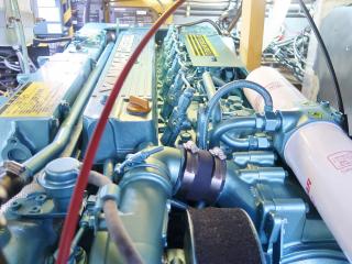 ◆エンジンはヤンマー社製の過給機付き6気筒ディーゼルエンジン、6LY2-WSTを2基搭載しています。検査手帳に記載されている連続最大出力は345PS/3101rpmです。なお、取材時のエンジンアワーは左舷、右舷エンジンともに約161時間でした。