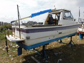 昭和59年進水で38年経過しておりますので、年式相応の使用感があり、色あせや水垢汚れなどがありますが、エンジンは好調でまだまだ充分使用できる状態です