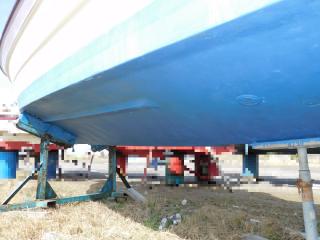 船底は取材時に上架して清掃塗装をしており、現在は海上係留しております。