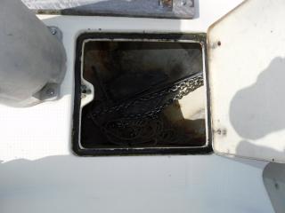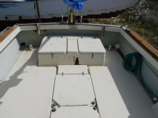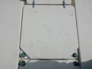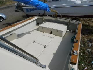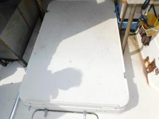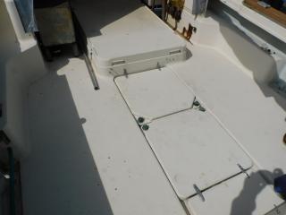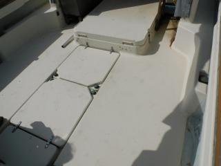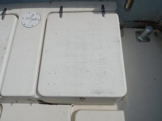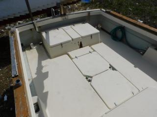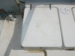 デッキ中央にイケスとエンジンルーム後部のハッチがあります。