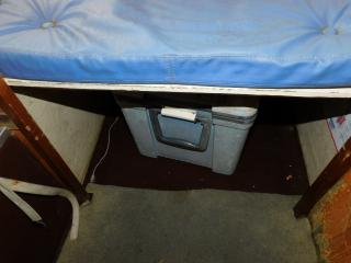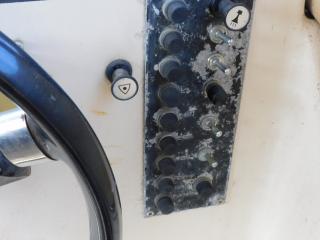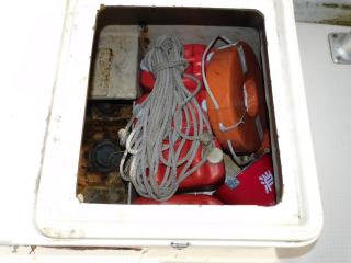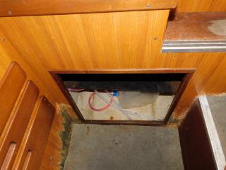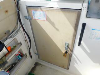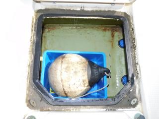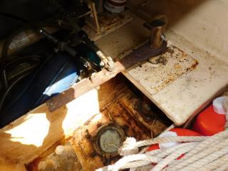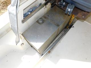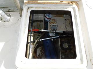 燃料タンクは左舷側のタンクに燃料漏れがありましたので使用を停止、現在はキャビン、ナビゲーターシート下に70Lのステンレスタンクを床置きして使用しております。
