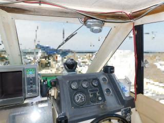ハードトップのキャビンは、右舷にコックピットとキャプテンシート、左舷にナビゲーターシートが配置され、床下中央には、一段高くなっているエンジンハッチがあります。