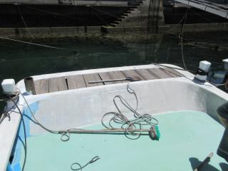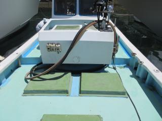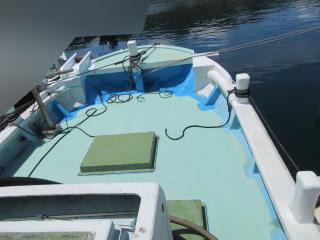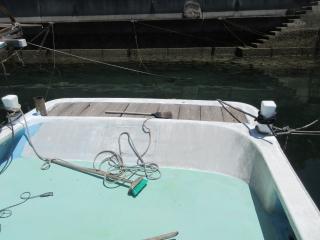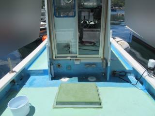 ◆エンジンは中央にあります、艫デッキは広く使いやすい造りです。