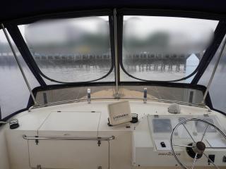 雨天時や冬の寒い時期なども快適に操船が可能です。