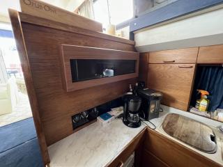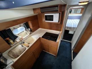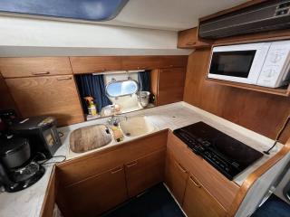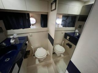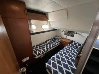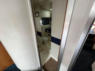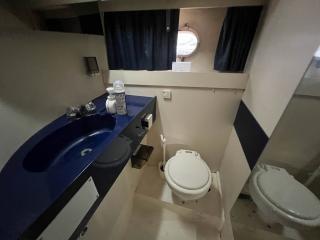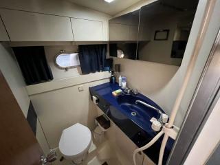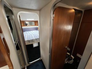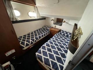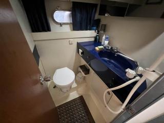 左舷側には、ゲスト用のトイレ、シャワーが装備されており、右舷側にはゲストルームとしてベッドが2つ装備されています。