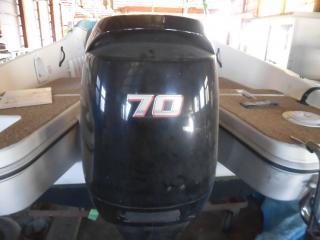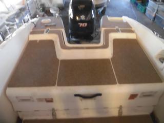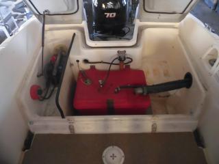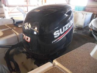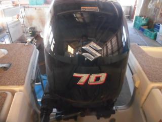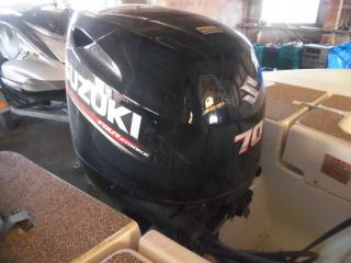 エンジンはスズキ製DF70A(4スト70馬力)搭載でMAXスピードは約27ノット程です。使用時間は約80時間程と少なく大変に燃費のいいエンジンです。
