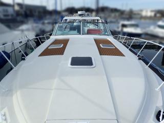 ご紹介の艇は1990年式(平成2年式)のトロージャン12mエクスプレス(40フィート)です。年数は経過して来ていますので、所々と手直しが必要になりますが、広々としたデッキ周りと広々と使いやすい空間のキャビンで、波切りの良いハルデザインなどに大きな魅力を感じる艇です。遊び心と居住性を両立させたボートですので、自分なりにリメイクやサイズアップで船をお探しの方はとてもご興味を持たれるのではないかと思います。
