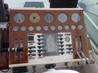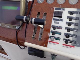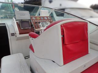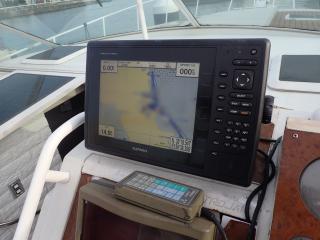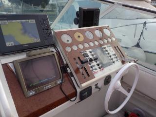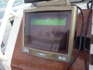 操船席にはコンパス、ステレオ(FUSION)、GPS(ガーミンAQUAMAP100XS)GPS魚探(YAMAHA YFV10GP9)、レーダー(FURUNO)、舵リモコン、サーチライト、トリムタブコントロール等が装備されています。