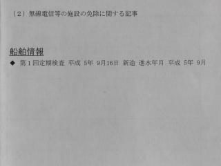 ◆船舶検査証書と船舶検査手帳をご覧になって、船体やエンジンの型式、定員、用途、登録上の船体寸法、航行区域、航行上の条件、検査の状況などをご確認下さい。