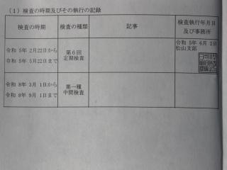 ◆次回検査は定期検査で令和8年9月1日まで有効です。