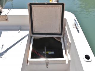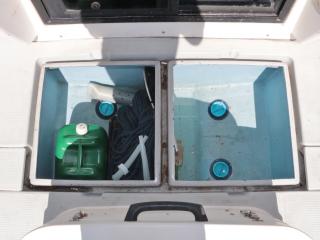 ◆リアドア後方、エンジン前にイケスが備わっています。重心位置に近そうなので水を張ってもバランスは良さそうです。なお、イケスはポンプで海水を強制循環させることも可能な仕様です。