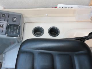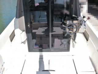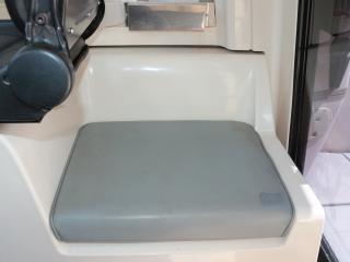 ◆キャプテンシートも大きな破れなどなく良好です。また、足元にはDENSOのヒーターも装備されています。なお、キャビン内のシートはキャプテンシートの後ろに1脚、左舷側に2~3人掛けのベンチシートが備わっていますので、キャビン内には4~5人座れる感じです。