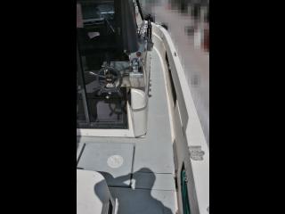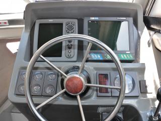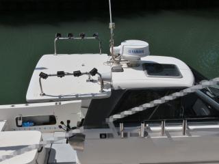 ◆アフトデッキリアドア後方右舷にはセカンドステーションが装備され、頭上にはハードトップオーニングも備わっているので、日差しの強い時や雨天時は重宝するでしょう。オーニングテントは2023年に新調されたとの事で、問題無いように見受けられましたが、取材時にオーニングテントは開いていないので重視される方はご見学時にご確認下さい。