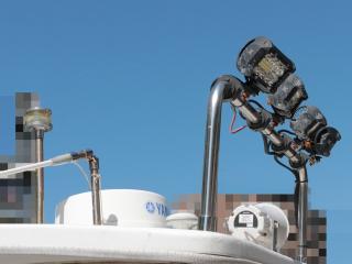 ◆キャプテンがデッキ上のアングラーに声を掛けられるアンプや、夜間航行用のサーチライトも艤装されています。