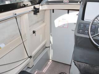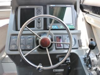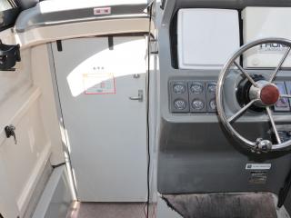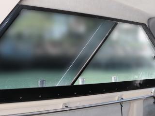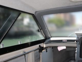 ◆UF-28はキャプテンシートに座ると360度良く見えて死角の少ない艇です。キャプテンシートに座った状態でしっかり前方も見えるので船の往来が多い所でもストレスが少なそうです。また、操船部両側のガラス窓はスライド開閉可能な仕様で風通しも良好ですし、天井にはスカイライトハッチも艤装され、船内は明るいですが、直射日光を入れたくない時はカバーで遮る事もできます。