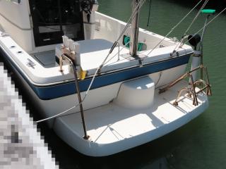 ◆船尾には大きなトランサムステップとラダーも装備していますので、少人数のダイビング船としても使えなくもないと思われます。
