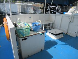 写真のように船内やデッキ周りがとても広く、とても使い勝手が良い構造です。