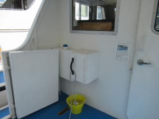 以前は現場視察船として使用されていましたが、現在は交通船や作業船として使用しています。建造時は24トンの船舶でしたが現在は13トンに減トンして使用しています。