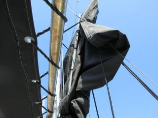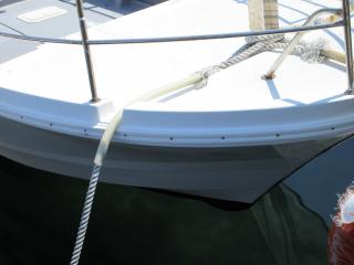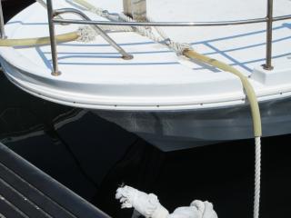 ハル中央部の防舷材は取り外されスッキリした船体になっています。