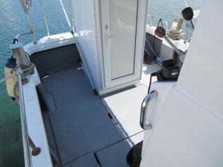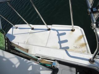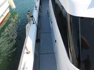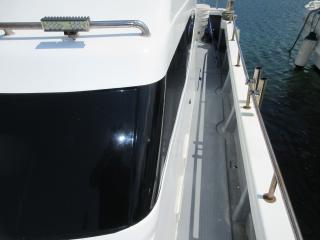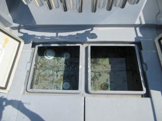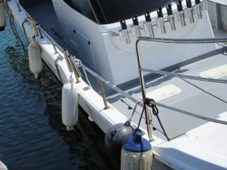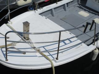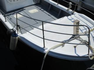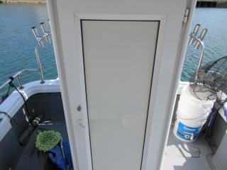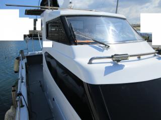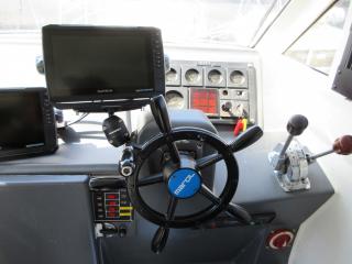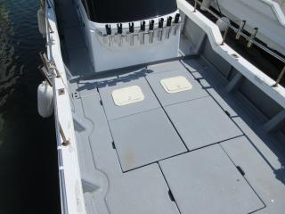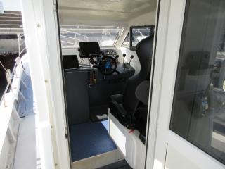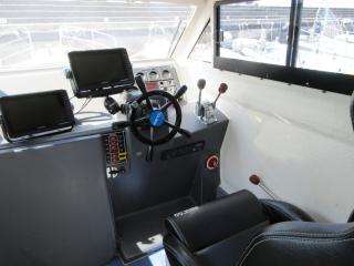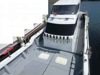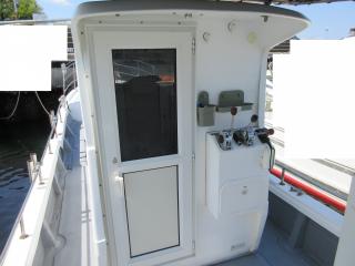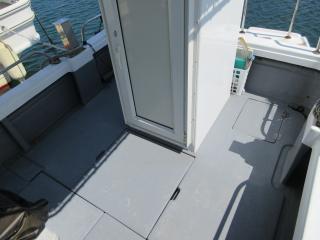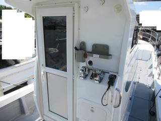 船体はレストアされ、ハルの中央部の防舷材も取外しや細部にわたり手が入っている艇になっており特に大きな特徴としましてはヤマハブリッジをベースにFRPで後方に延長、マリン用リアドアを取り付けたスポーティーなカスタムブリッジになっています。キャビン内も扱いやすいレイアウトとなっております。