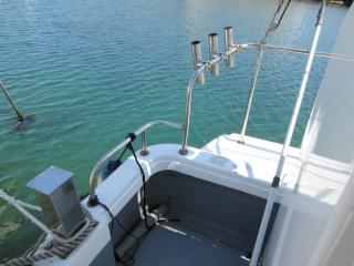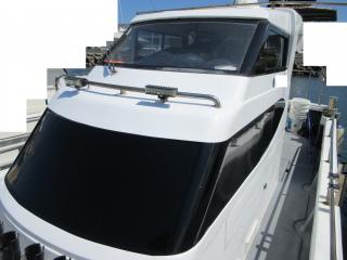 写真にはございませんがキャビン中央部から船首にむけて簡易オーニングが有りますので夏の炎天下の中でも快適に釣りを楽しむ事ができます。