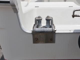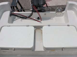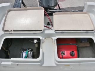 ◆アフトデッキのトランサム側ハッチ左舷側には燃料タンク、右舷側にはバッテリー及びメインスイッチがあります。
