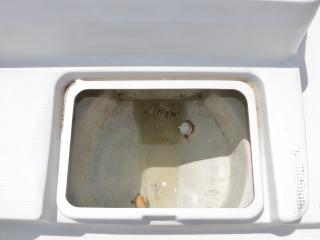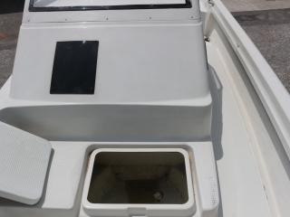 ◆キャビンスペース内も綺麗に掃除されています。ここにはヘルムハンドルの左側にあるハッチから入れます。内部は大人が数人入れる広さがありますので、それなりに長いワンピースロッドや大きめのクーラーボックスなども入りそうです。また、マリントイレの取り付けも可能だと思われます。