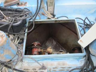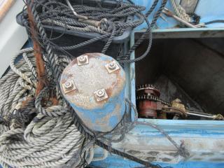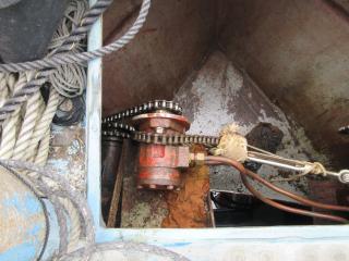 ◆バウに油圧式の蛸壺巻きローラーがあります。