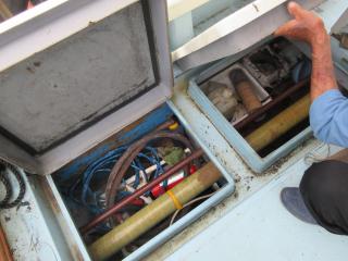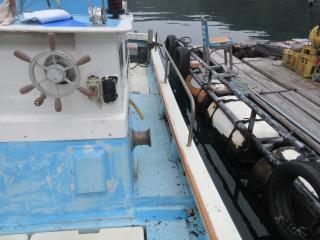 ◆バウには油圧式の蛸壺を上げるためのローラーが設備されています。