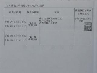 ◆次回検査は中間検査で令和9年3月19日まで有効です。