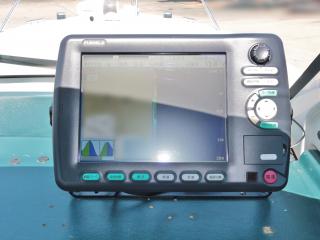 ◆操船部には、FUSO製の10.4インチGPS魚探、「FEG-1041F_RC」が装備されています。このGPS魚探は取材時に電源が入る事を確認しました。なお、このGPS魚探にはおそらく全国地図が入っていると思われます。(当方調べによるもので入っていない可能性もあります。)また、アフトデッキのセカンドステーション前にもモニターがあり、こちらでもモニタリング可能です。