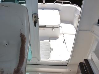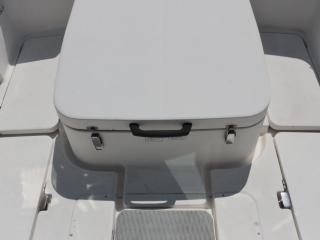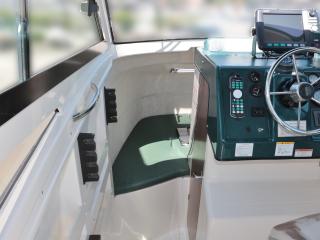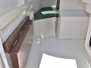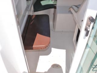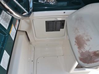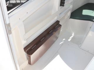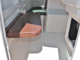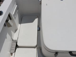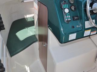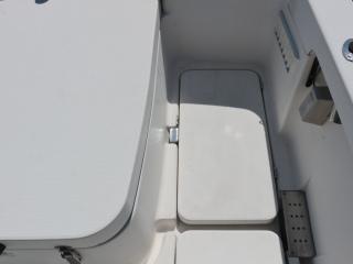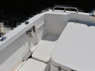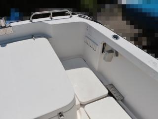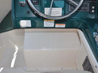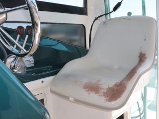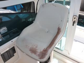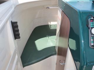 ◆キャプテンシートは変色している箇所がありますが、使用には影響が無いと思われます。なお、キャビン内のシートは左舷側に2人掛けのベンチシートが備わっていますので、キャビン内にはキャプテン含め、3人座れる感じです。