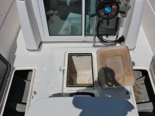 ◆操船部前のVバースは左舷側から入れます。中は大人が1人が横になって寝られるほどのスペースがあります。また、Vバースにはスカイライトハッチが装備されており、中は明るく、また夏季はここを開けると風通しが良いと思われます。