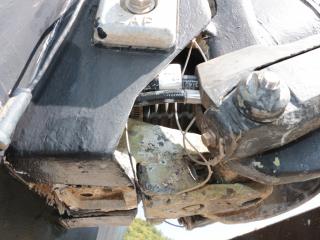 ◆エンジン廻りは外観上は大きな問題は無いように見受けられました。オイルや燃料が多量に漏れていたり、広い範囲に渡って染みだしているような事も無いように見受けられました。また、スターンドライブも航行に影響があるようなプロペラやキャビテーションプレートの大きな割れや曲がりなどは無いように見受けられました。また油圧シリンダーからのオイル漏れも無いように見受けられました。