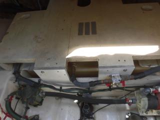 リアオープンデッキの床面ハッチ下はエンジンルームでハッチは電動で上下できます。