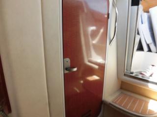階段を降りた左舷後方にはミッドバース入口があり大人2人が横になれるスペースが有ります。