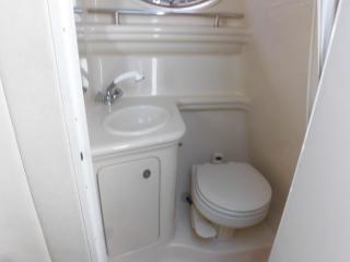 右舷側には個室の手動マリントイレがあるので女性や子供が乗船しても安心です。