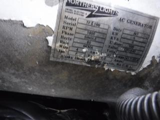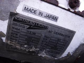 メーカー名:ノーザンライツ ワット数:5kw 使用時間:1900h 燃料:軽油 |