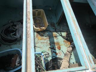 ◆船首には油圧クレーンを設備していました、台座があります。