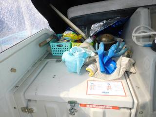フロアパネル下には収納庫を装備しており、トイレはポータブルトイレです。