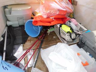 バウバースは木製のフロアパネルが敷かれていますので、限られたスペースではありますが大人が寛ぐことができ、現状では釣り具等の収納庫として使用しております。