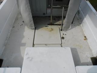 アフトデッキはエンジンハッチがあるため、若干狭く感じ取れますが十分な広さはあり、ハッチ上を釣り座として使用できますので、使いやすいデッキとなっております。