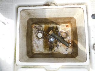FRPの状態は経年経過のためゲルコートの艶は少なく、色あせヒビ割れなどは年式相応です。