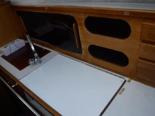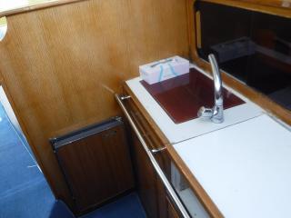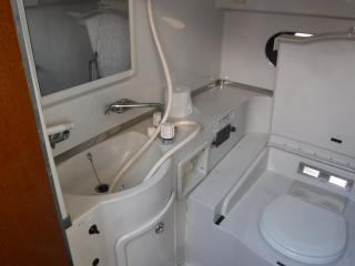 船内にはマリントイレ、シンク、