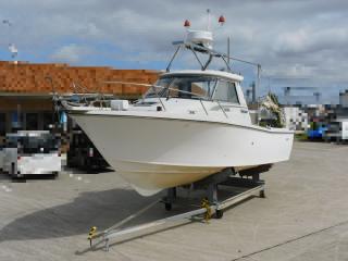 ハイパワーエンジン(230馬力)を搭載し、インボードならではの抜群の走行性能を有している艇で、トローリング装置付きです。